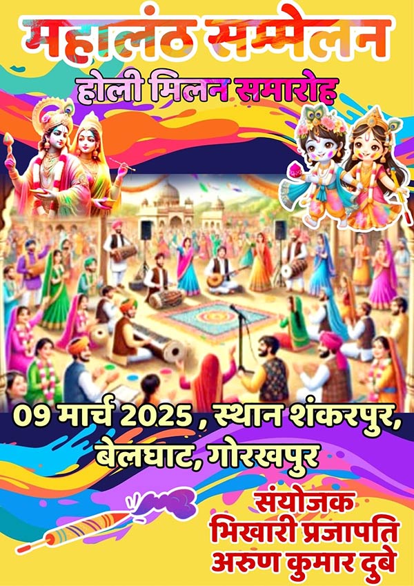A grand Mahalanth Conference & Holi Song Competition is set to take place on Sunday, March 9, 2025, Near Ashok Stambh, Shankarpur, Belghat, Gorakhpur