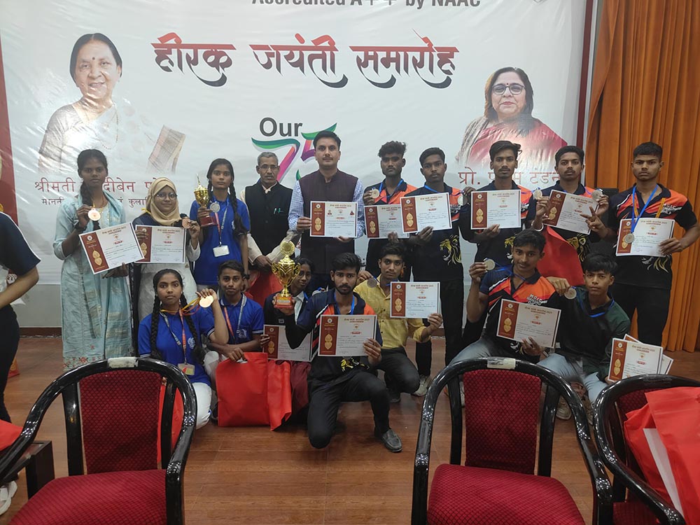 हीरक जयंती समारोह में राज्यपाल श्रीमती आनंदीबेन पटेल ने विजेताओं को सम्मानित किया। प्रशस्ति पत्र और मेडल प्राप्त कर छात्रों ने गर्व का अनुभव किया।