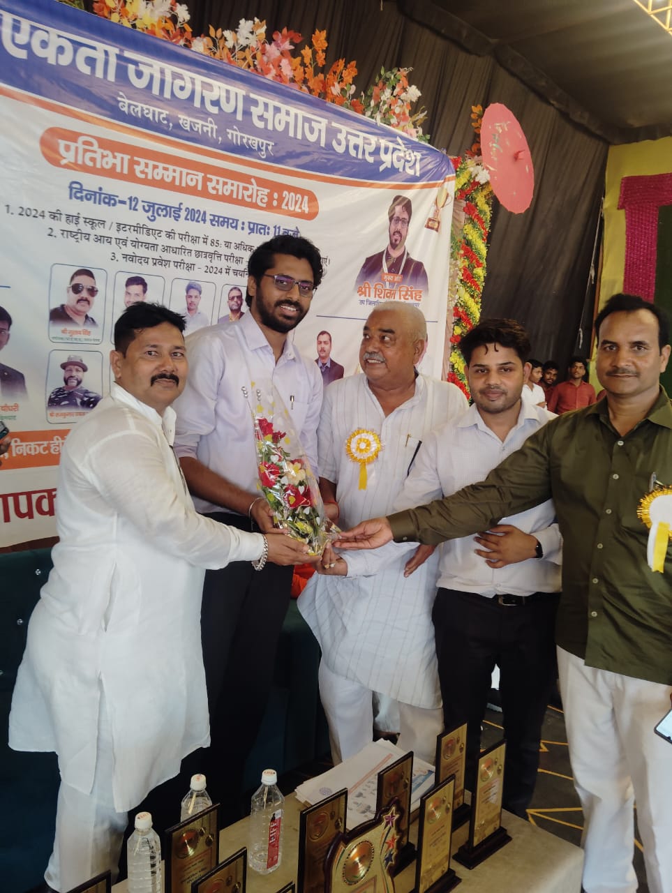 बेलघाट में प्रतिभावानों को सम्मानित करते एसडीएम शिवम सिंह ब्लॉक प्रमुख पूजा सिंह कौशिक विजय प्रकाश मणि त्रिपाठी इंजीनियर गिरजेश कुमार भास्कर भिखारी प्रजापति अध्यक्ष विश्व हिंदू महासभा उत्तर प्रदेशराजमंगल मौर्य प्रबंधक भैरव प्रसाद मौर्य स्मारक महिला महाविद्यालय बिशनपुरा विनय कुमार शाही समाजसेवी बेलघाट केडी यादव उमापति दुबे पूर्व अध्यक्ष प्राथमिक शिक्षक संघ बेलघाट विजय कुमार चौधरी अध्यक्ष प्राथमिक शिक्षक संघ बेलघाट डॉ रोहित कुमार अरुण कुमार दुबे अध्यक्ष भारतीय एकता जागरण समाज उत्तर प्रदेश इंजीनियर गिरजेश कुमार भास्कर विशिष्ट अतिथि एवं कार्यक्रम संरक्षक व अन्य गणमान्य।