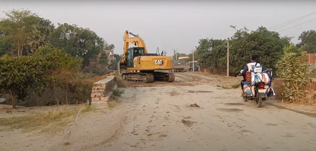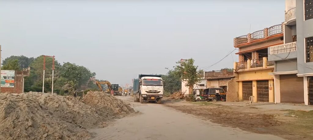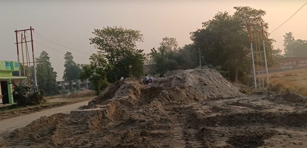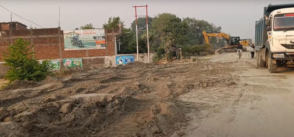 सिकरीगंज से बेलघाट की ओर जाने वाली सड़क पर भारी मात्रा में मिट्टी डाली जा रही है। एक समय यह सड़क मुश्किल से 12 से 14 फीट चौड़ी थी, लेकिन अब लगभग 13 फीट तक मिट्टी डालकर सड़क को ऊंचा और चौड़ा किया जा रहा है। जगह-जगह डंपर लगे हुए हैं और पॉपलेन मशीनें लगातार काम में जुटी हैं।