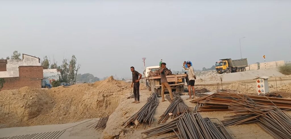 ओवरब्रिज के पिलर का काम शुरू हो चुका है। भारी लोहे की रेलिंग और रोड डालने का काम प्रगति पर है। बड़े-बड़े गड्ढों की खुदाई के बाद ढलाई और अन्य निर्माण सामग्री की व्यवस्था भी दिख रही है।
