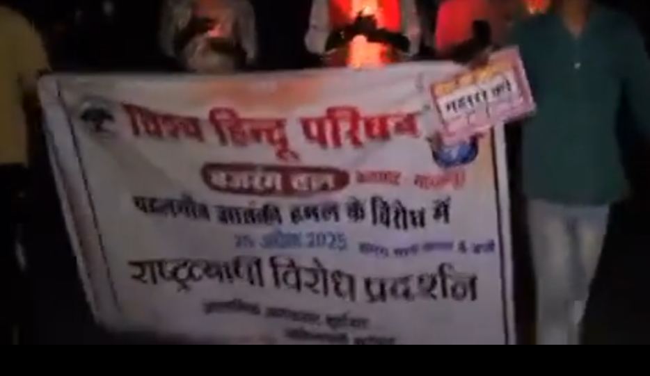 बेलघाट में विश्व हिंदू परिषद और बजरंग दल ने पहलगांव में हुई आतंकी घटना के विरोध में श्रद्धांजलि सभा और पुतला दहन किया। बड़ी संख्या में कार्यकर्ताओं ने एकजुट होकर शांति और आतंकवाद के खिलाफ आवाज उठाई।