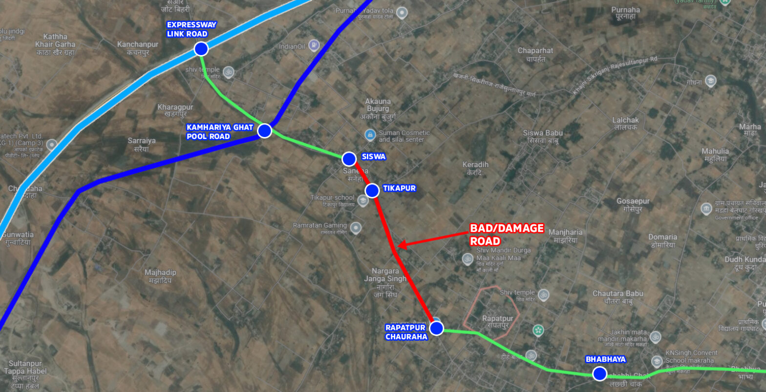The Siswa-Tikapur-Rapatpur road in Khajani, Gorakhpur is in terrible condition, with large potholes and thick dust, making travel unsafe. Despite multiple surveys, the 500-meter worst stretch between Tikapur and Rapatpur remains neglected, while nearby roads have been repaired. We urge the authorities and MLA Shri Ram Chauhan to prioritize its repair for safe and smooth travel.