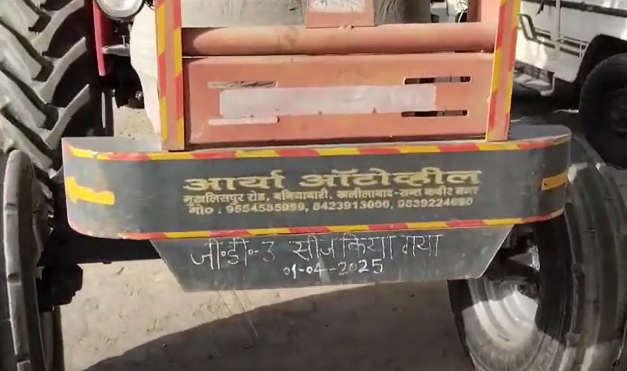 In the Belghat police station area of Gorakhpur, the police seized a vehicle illegally used for fodder cutting. This vehicle was caught near Nargada Jagga Singh village under Belghat police jurisdiction.